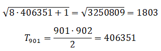 la seconda coppia ha tutte le cifre diverse. Verifichiamo ora se il numero 406351 è un numero triangolare, cioè se l'ottuplo di 406351 aumentato