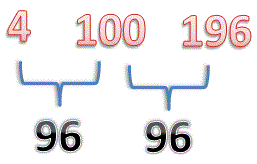 100 - 96 = 4 = 22 e 100 + 96 = 196 = 142