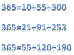 Ci sono tre modi per scrivere il numero 365 come somma di tre numeri triangolari: