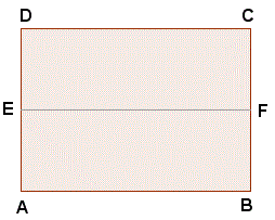 Piegare il foglio sovrapponendo il lato superiore CD sul lato inferiore AB e riaprire il foglio. La traccia della piega è la linea mediana EF