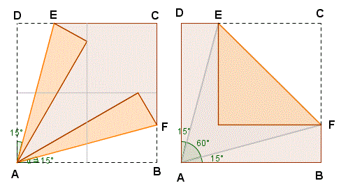 foglio lungo la linea EF dove E e F sono le intersezione dei lati degli angoli di 15° con i lati del quadrato.