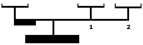 Quesito n° 19: Assegna ad ogni peso in figura un valore da 1 a 9, ciascuno preso una sola volta, in modo che la leva sia in equilibrio.