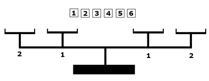 Quesito n° 12: Si ha una bilancia con quattro piatti 2 a sinistra e 2 a destra e 6 pesi: 1 kg, 2 kg, 3 kg, 4kg, 5 kg, 6 kg. Quanti modi ci sono per collocare sulla bilancia tutti i 6 pesi facendo sì che la bilancia resti in equilibrio senza contare le situazioni speculari.