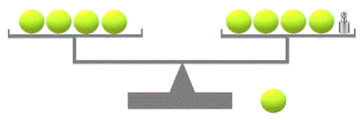 Quesito n° 4: Si hanno 12 palline apparentemente tutte uguali, tuttavia è presente una sola pallina difettosa, più pesante delle altre. Avendo a disposizione una bilancia a doppio piatto senza i pesi, qual è il numero minimo di pesate necessarie ad individuarla.