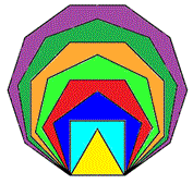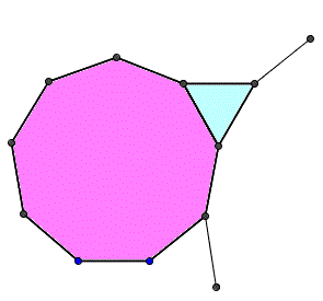 Quesito n° 10: In figura è rappresentato un ennagono regolare, un triangolo equilatero e solo quattro lati di un poligono regolare. Quanti lati ha il pologono regolare non completato?