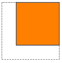 Quesito n° 35: In un quadrato di area 1000 cm2 è stato costruito un rettangolo avente due vertici opposti nei punti medi di due lati opposti del quadrato come si vede in figura. Qual è l'area del rettangolo?