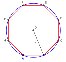 Quesito n° 16: Un ottagono regolare ABCDEFGH è inscritto in una circonferenza di raggio r. Qual è l'area dell'ottagono?