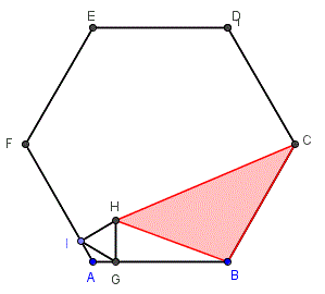 Quesito n° 19: Quanto misura l'area del triangolo BCH sapendo che l'area dell'esagono regolare misura 30 cm2 e il triangolo GHI è equilatero?