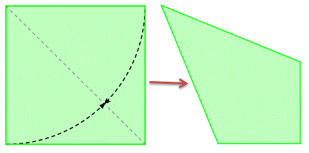 Quesito n° 21: Un foglio di carta quadrato di lato 1 viene piegato in modo da sovrapporre due lati consecutivi su una diagonale ottenendo un deltoide come si vede in figura. Qual è l'area del deltoide?