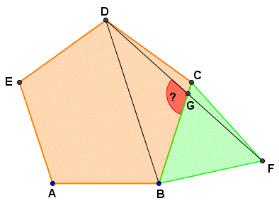 Quesito n° 22: Qual è l'ampiezza dell'angolo sapendo che i poligoni ABCDE e BFC sono regolari?