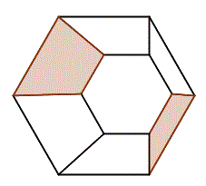 Quesito n° 24: I due esagoni regolari in figura hanno i lati paralleli che misurano rispettivamente 1 cm e 2 cm. Qual è la somma delle aree dei due trapezi colorati?