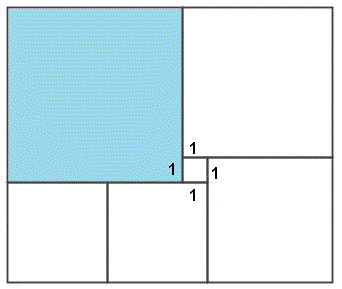 Quesito n° 26: Un rettangolo è stato diviso in 6 quadrati come si vede in figura. Sapendo che il quadrato più piccolo ha lato 1 quanto è lungo il lato del quadrato colorato?