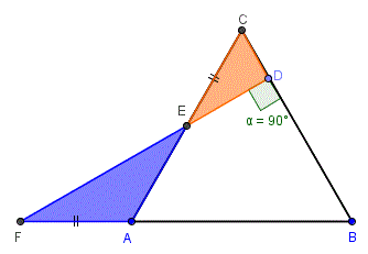 Quesito n° 5: ABC è un triangolo equilatero di lato l e DEF è un altro triangolo equilatero in esso inscritto con il lato ED perpendicolare ad AB. Quanto misura il lato del triangolo DEF?