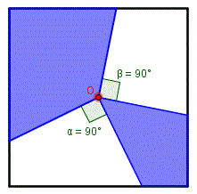 Quesito n° 30: L'area del quadrato misura 16 cm2 e O è il centro del quadrato. Quanto misura l'area della regione colorata?