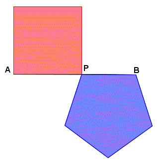 Quesito n° 31: Determina sul segmento AB lungo 36 cm, il punto P in modo che il quadrato costruito su AP e il pentagono regolare costruito su PB abbiano lo stesso perimetro.