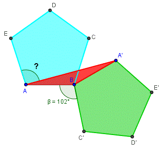 Quesito n° 4: Qual è l'ampiezza dell'angolo A'AE sapendo che i due pentagoni sono regolari e congruenti?