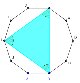 Quesito n° 6: Quali sono le ampiezze degli angoli del triangolo BFI inscritto nel decagono regolare?