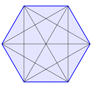 Quesito n° 9: Considera un esagono regolare con tutte le diagonali. In questa figura quanti triangoli ci sono aventi i vertici in tre vertici dell'esagono?