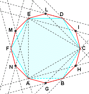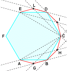 Uniamo C con E e ripetiamo la stessa procedura precedente. In questo modo, otteniamo i punti I e L. Uniamo C con I, D con I e con L, E con L.