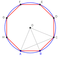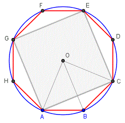 dal prodotto delle diagonali diviso due. La diagonale OB misura r e la diagonale AC è il lato del quadrato inscritto nella circonferenza.
