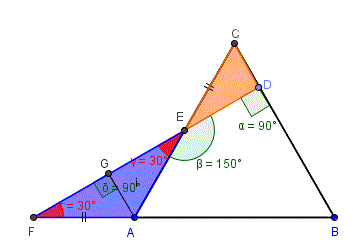 Determiniamo gli angoli e tracciamo l'altezza relativa al lato FE del triangolo AEF come si vede in figura.