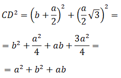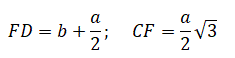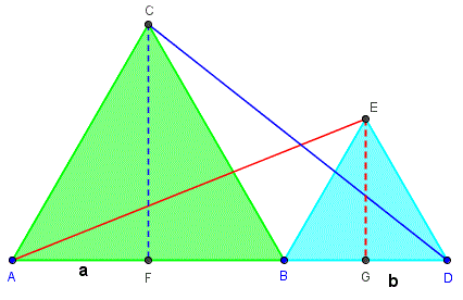 Indichiamo con a e b i lati dei triangoli equilateri e tracciamo le altezze relative alla base dei triangoli.