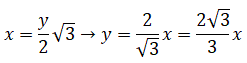 Possiamo anche esprimere y in funzione di x ricordando la relazione tra i cateti in un triangolo rettangolo con un angolo acuto di 60°: