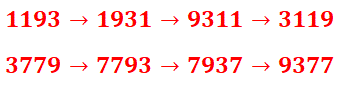 un multiplo di 5 ci sono solo le due terne di numeri primi ciclici con quattro cifre: