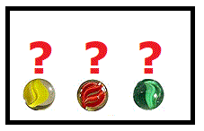 b) tre palline di colori differenti.