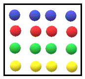 Quesito n° 30: Una scatola contiene 16 palline, quattro sono rosse, quattro sono verdi, quattro sono gialle e quattro sono blu. Dalla scatola si estraggono a caso, senza reimbussolamento, tre palline. Qual è la probabilità di estrarre: