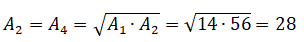 A = A1 + A2 + A3 + A4 = 56 + 28 + 14 + 28 = 126