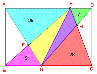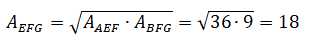 E consideriamo il trapezio ABGE; l'area del triangolo EFG è data dalla radice quadrata del prodotto delle aree dei triangoli