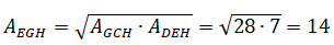 Consideriamo il trapezio CDEG; l'area del triangolo EGH è data dalla radice quadrata del prodotto delle aree dei triangoli