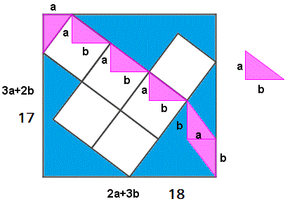 Ci rendiamo conto che la lunghezza 17 corrisponde a 3 volte il cateto a più 2 volte il cateto b: