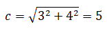 E queste due equazioni sono entrambe vere se a = 3 e b = 4. Possiamo ora determinare l'ipotenusa del triangolo rettangolo che è
