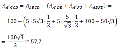 L'area della regione comune è data dalla differenza fra l'area del quadrato ABCD e la somma delle aree dei triangoli A'DE, A'FG e del