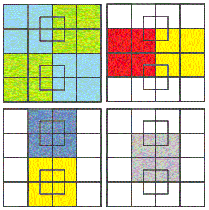9 quadrati di lato 4;