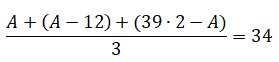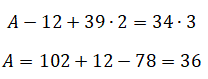 B = A - 12 = 36 - 12 = 24; C = 39 ⋅ 2 - A = 78 - 36 = 42