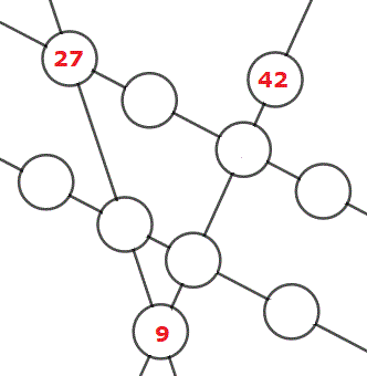 Quesito n° 9: Quali numeri devi inserire nei cerchi in modo che su ciscuna linea ci sia una sequenza di numeri in progressione aritmetica?