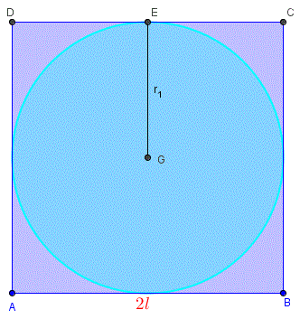 Il raggio del cerchio inscritto nel quadrato ABCD misura l e quindi l'area del cerchio è: