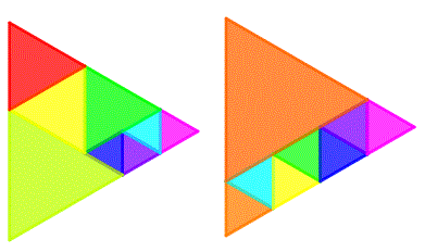 Ecco due modi diversi di suddivisione di un triangolo in otto triangoli equilateri.