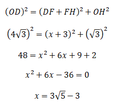 Applichiamo il teorema di Pitagora al triangolo DHO per determinare il lato del triangolo equilatero DEF: