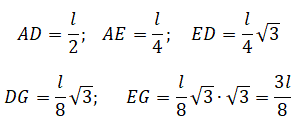 gli angoli di 30° e 60° e quindi i tre triangoli sono simili. Ora, se indichiamo con l la lunghezza di BC e utilizziamo le proprietà