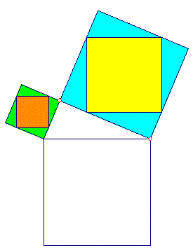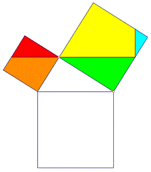 Quesito n° 32: Come è possibile ricoprire perfettamente, senza lasciare spazi vuoti, i quadrati sui cateti utilizzando le parti che formano il quadrato sull'ipotenusa?