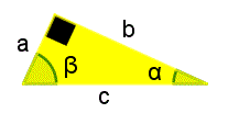 Indichiamo con a, b, c i cateti e l'ipotenusa del triangolo rettangolo e con α e β gli angoli acuti.
