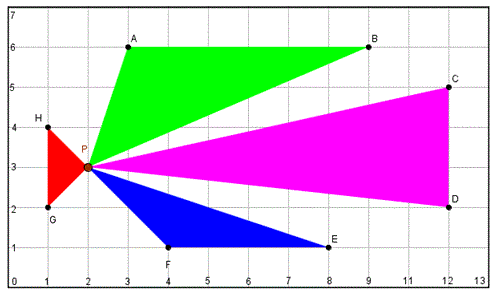 Quesito n° 26: In quale nodo del reticolo bisogna spostare il vertice P in modo che i tre triangoli abbiano la stessa area?