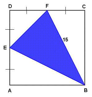Quesito n° 35: Qual è l'area del triangolo EBF inscritto nel quadrato ABCD?