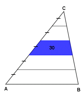 Quesito n° 38: Qual è l'area del triangolo ABC se l'area del trapezio colorato è 30?