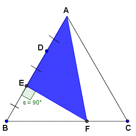 Quesito n° 40: Qual è il rapporto tra l'area del triangolo equilatero ABC e l'area del triangolo rettangolo colorato AEF?