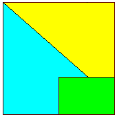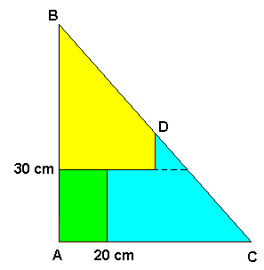 Ecco tre possibili soluzioni che dividono il triangolo rettangolo in tre pezzi: Prima soluzione: Seconda soluzione: Terza soluzione (D è il punto medio dell'ipotenusa):